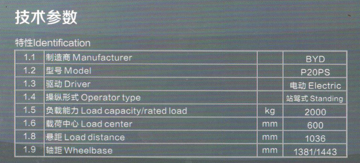 比亞迪叉車P20PS站駕式托盤搬運車_托盤搬運車_叉車系列_產品中心_廈門永新昌機械設備有限公司