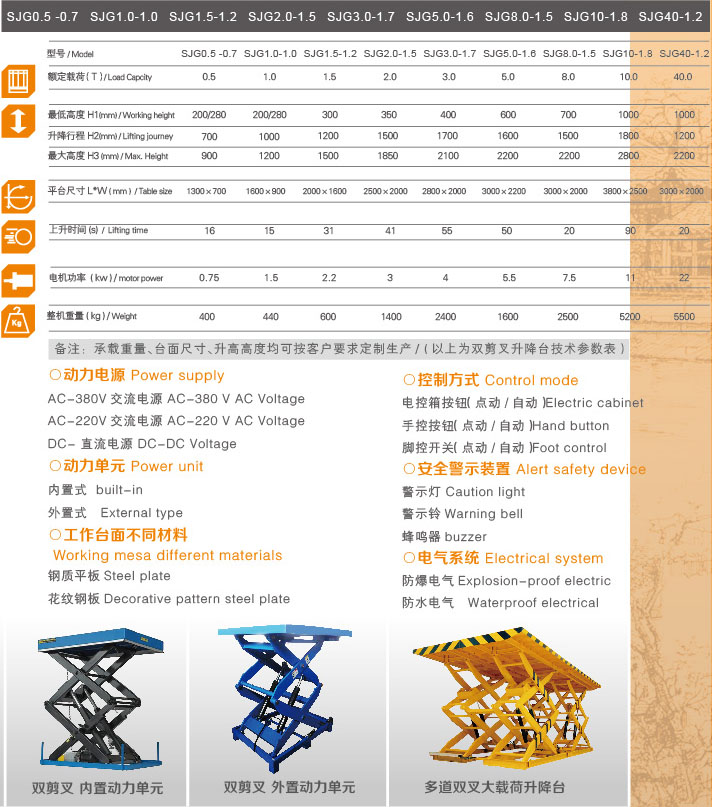 固定式電動液壓升降臺是一種升降穩定性好,適用范圍廣的貨物舉升設備。該產品承載量大、行程范圍廣、安全高效。主要用于物流過程中高度差之間的貨物上下、輸送;大型設備檢修、安裝和裝配時部件舉升;倉儲裝卸場所與叉車等搬運車輛配套進行貨物快速裝卸等。根據不同使用要求,可配置其它附加裝置,并可任意多項組合,達到更好的使用效果。